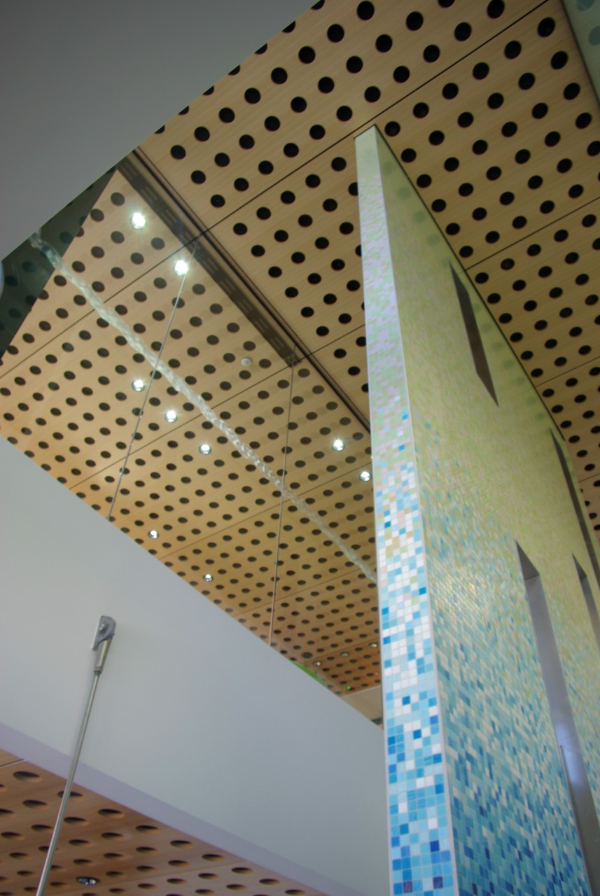 | Perforated Timber Panels | Panels with small perforations designed to allow sound to pass through to the acoustic backing. |
